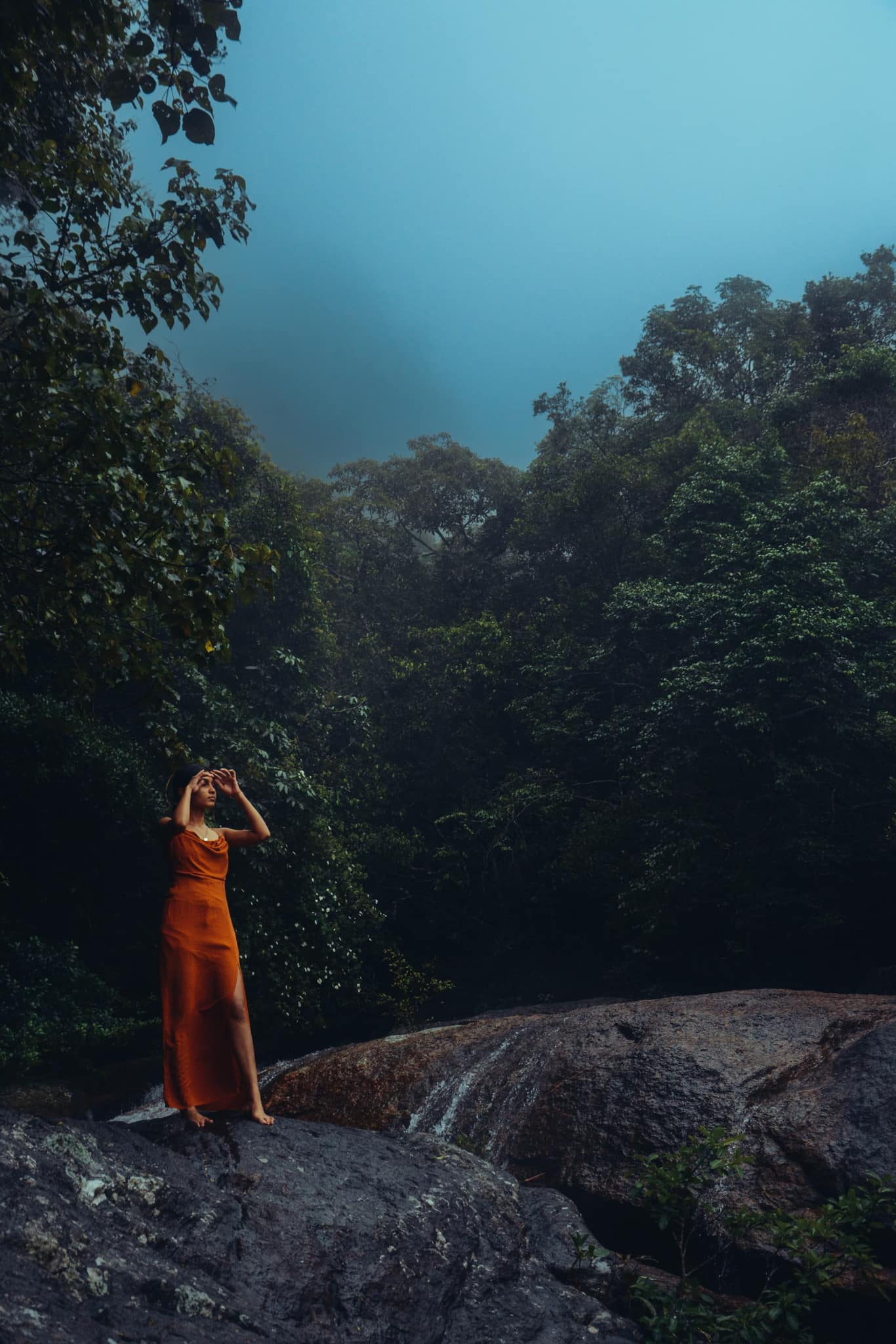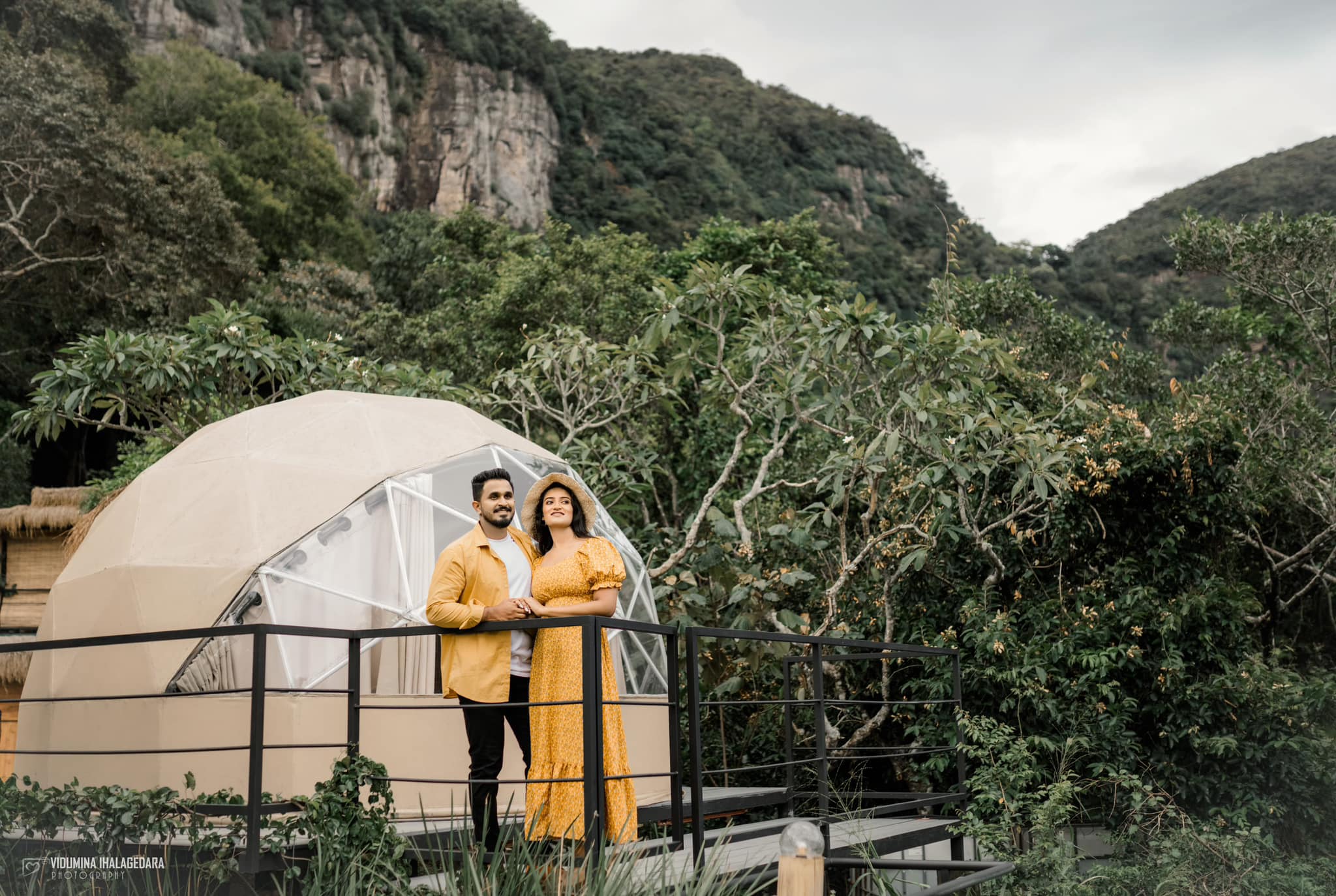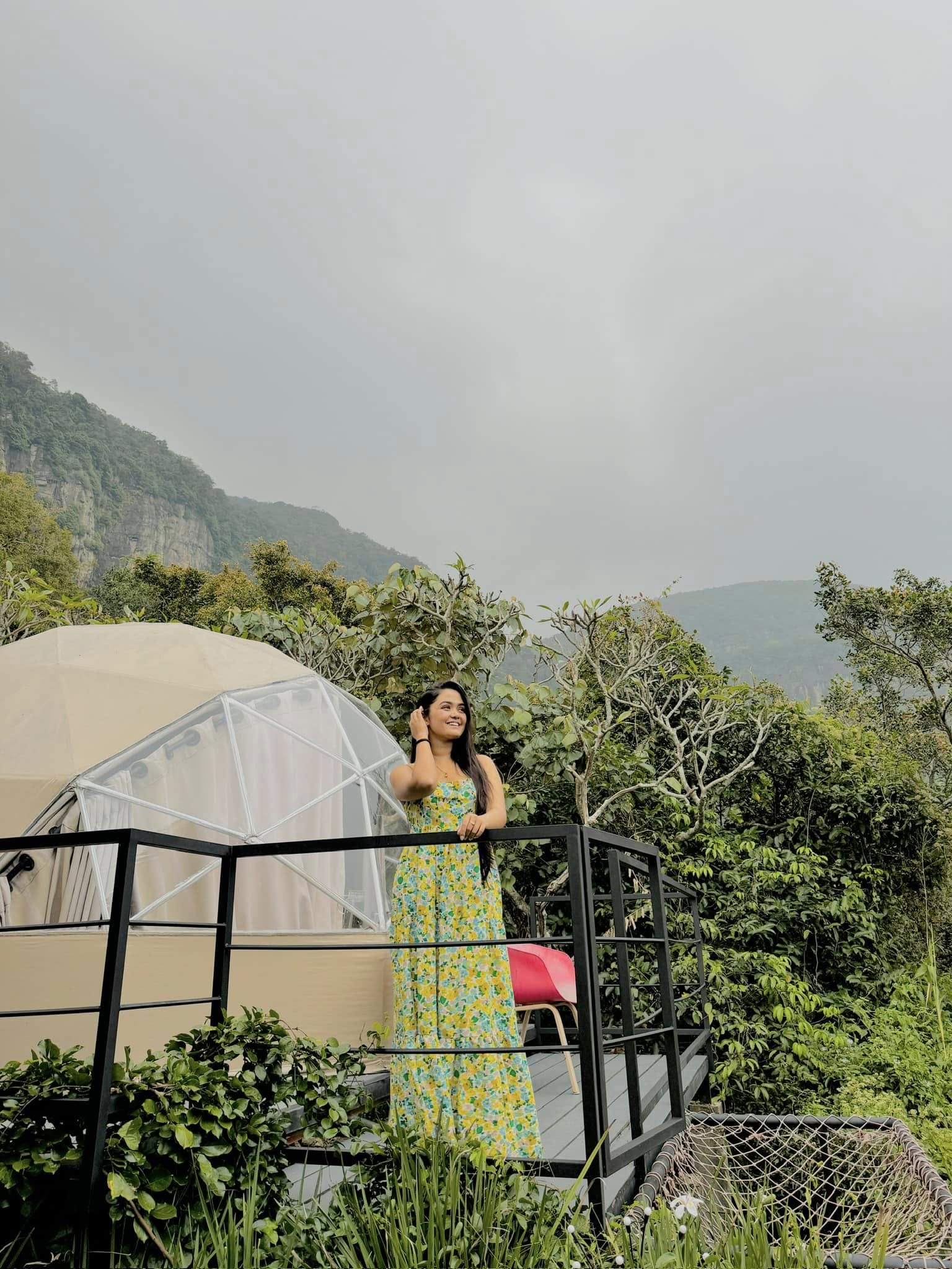 Glamping by Offtrek is nestled in the tranquil forest of Monarawaana, in the picturesque village of Maangoda, Hunnasgiriya, near Kandy, Sri Lanka. The location offers breathtaking panoramic views of the Knuckles Mountain Range, Madugalla Hills, Rajagala, and several stunning waterfalls including Bambaraganoya Falls, Kataraya, Upper Bambaraganoya, and Ellassa. The site is surrounded by mountains, making sunrise and sunset views glorious, and the star gazing experience dreamy and cozy